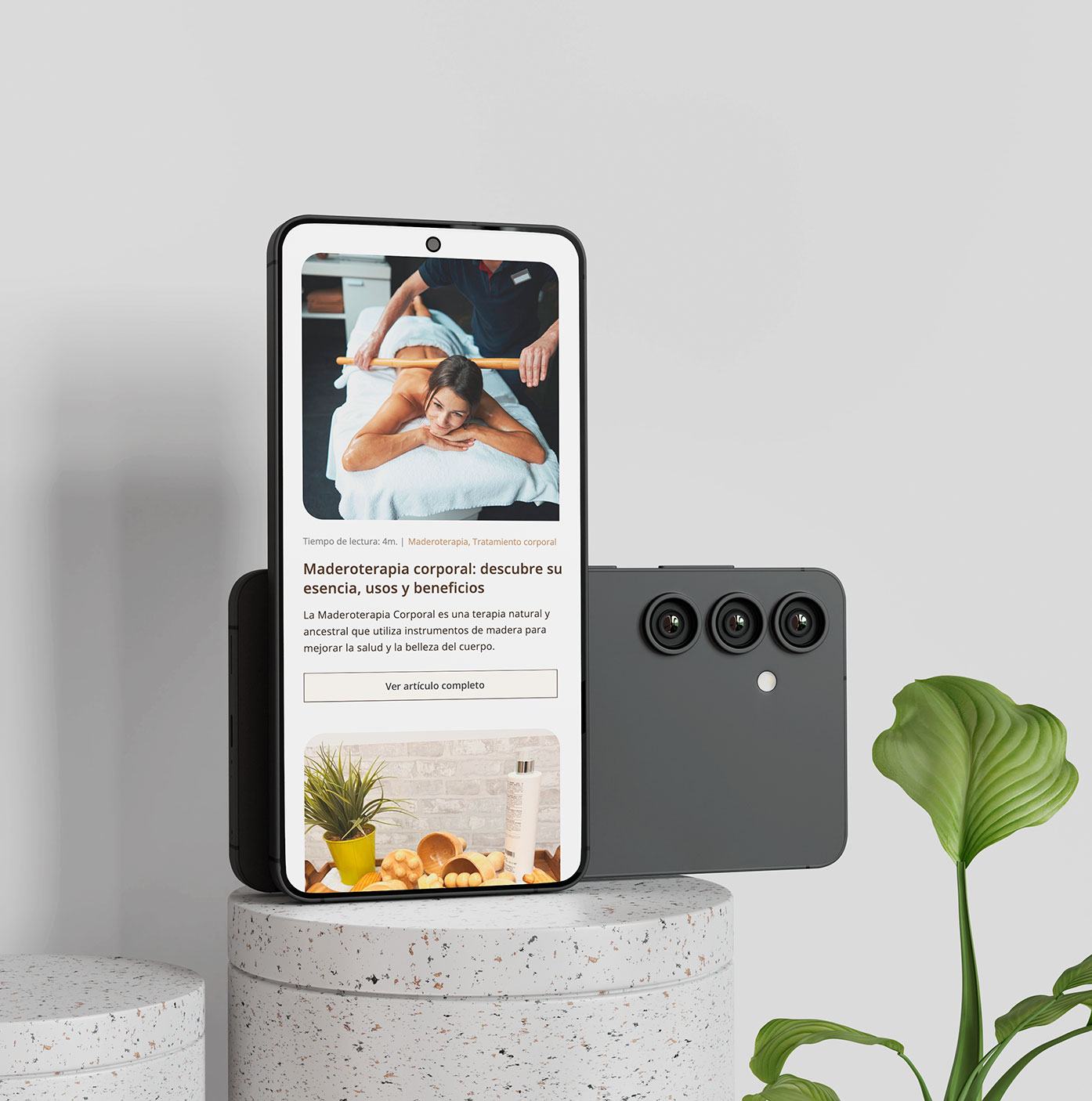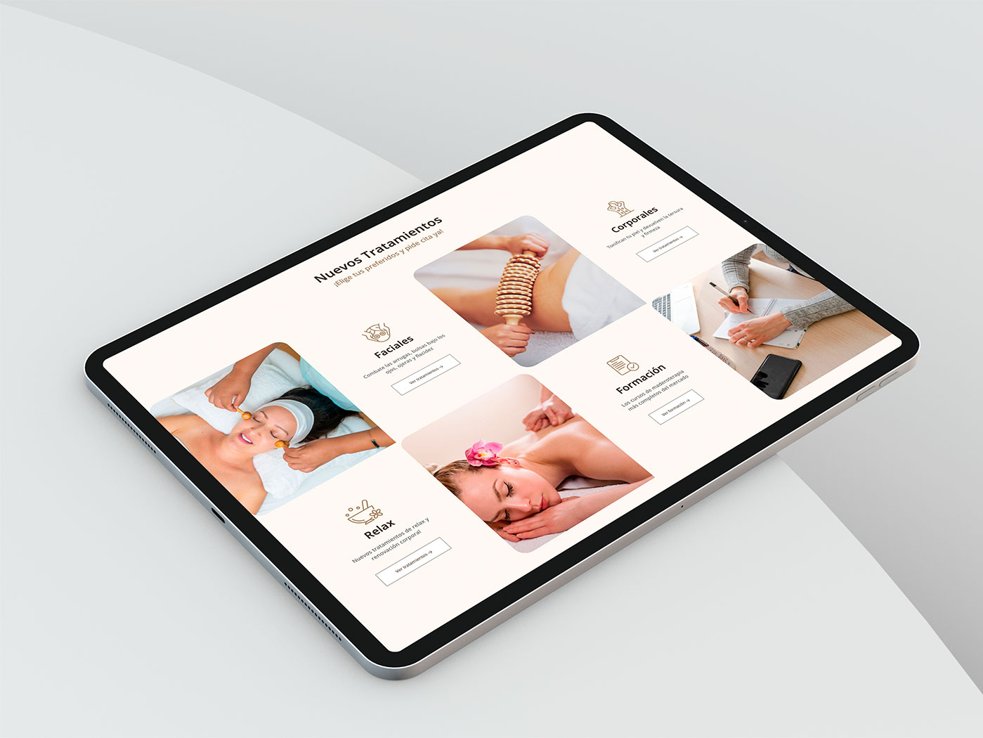 El nuevo sitio web destaca por un diseño limpio y cálido, donde cada elemento refuerza su identidad como experta a través de imágenes cuidadosamente seleccionadas, un blog de sus experiencias como profesional, sección de formación y cursos impartidos por ella y fichas de tratamientos que realiza en su centro.
